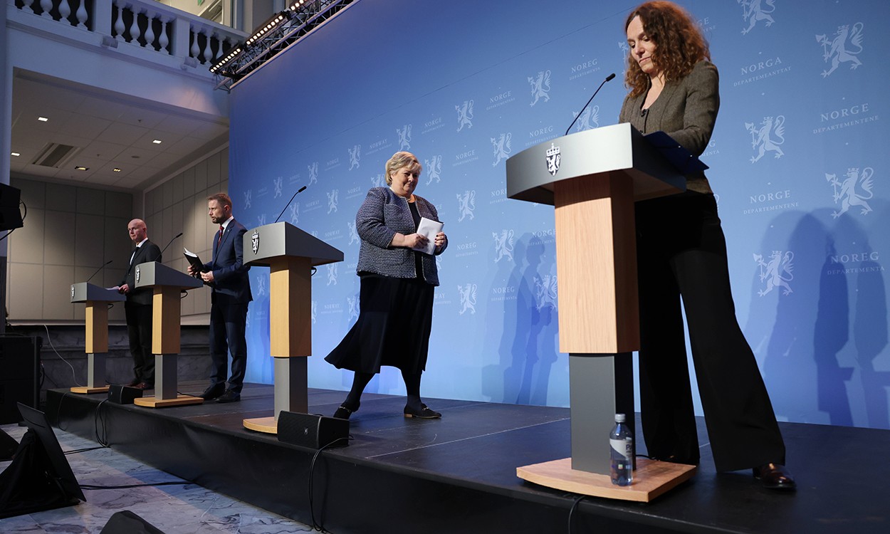 Statsminister Erna Solberg og helse- og omsorgsminister Bent Høie inviterer til pressekonferanse om reiser og opning av fleire verksemder og aktiviteter i samband med korona-krisa.